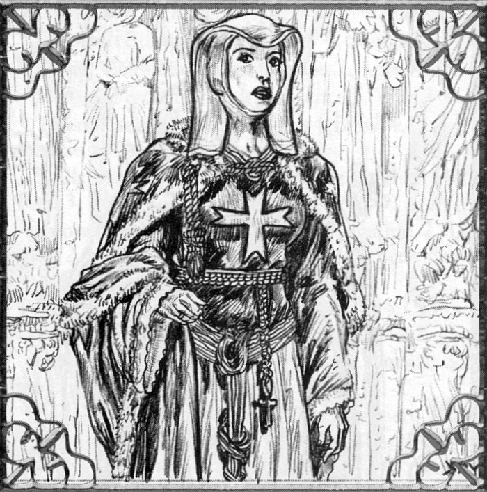 That night, God opened her mind. Her visions, of pale creatures stalking humans in the streets of the city and diabolic sorcerers calling forth demons from Hell, terrified her beyond reason. The following morning she joined the Sisters of St. John and studied under the old nun, Petrona. Her mentor was not a great seer herself, but she excelled in bringing on the talents of others. Ameline quickly became a gifted seer and an excellent inquisitor. She worked with an all-female, cross-order cell based in the Languedoc, rooting out the forces of the Devil.