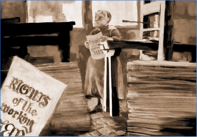 On the other, however, the repetitive factory work and miserable conditions that often accompanied it were abhorrent, not just maiming and killing workers but often crushing their dreams through the sheer, monotonous Banality of never-ending labor and cruelty. For boggans, they watched their dream of happy productivity warped into a nightmare, and they fought hard against it by advocating for labor laws and safety standards that protected the workers. It was a brutal and often disheartening struggle, pitting masses of laborers against wealthy owners and private armies, often including redcaps, hired to break strikes and prevent workers from organizing. Those who spoke out could be arrested, blacklisted, driven out of town, or labeled as dangerous subversives, and were routinely subjected to violence.