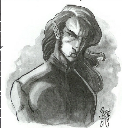 In Homid form, Chases is tall and imposing, with sharp features and long flowing silver hair, striped with black. He dresses in plain functional clothing these days, eschewing the flamboyance of his youth. His swords are always at his side. In Lupus form, which he wears more and more frequently, he is a long, lean silver wolf with black ears and a black striped tail. Traces of the fetish swords can be seen along his flanks by moonlight, as his fur there appears to glisten.