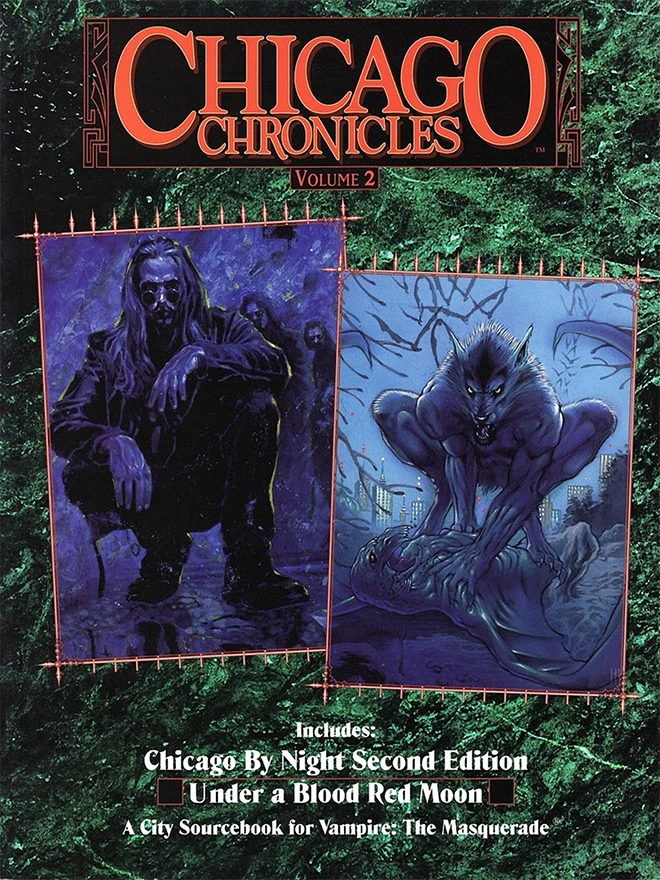 Chicago Chronicles Volume 2 is a collection of previously published sourcebooks printed into one book for Vampire: The Masquerade. It includes Chicago By Night Second Edition and Under A Blood Red Moon.