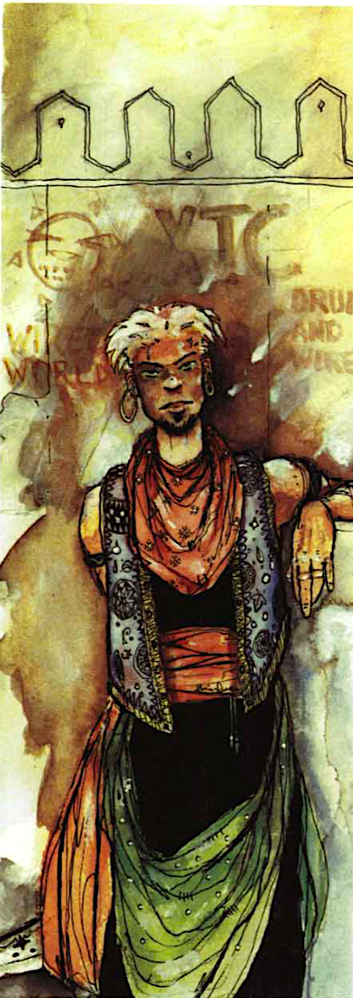 Style - Ask one of the other fae what an Eshu looks like, especially a Concordian, and they'll usually say: all bright fabric, colored sashes, hoop earrings, jingly bells, etc. Or they'll avert their eyes and mumble something about a loin cloth and turban. This is mostly false. Yes the Elegbara take pride in their ancestry especially on holy days but traditional dress is not everyday wear. The Elegbara tend to adopt the styles of the cultures they travel among, though more to understand their ways than to blend in. I mean... most can't help adding their own touches to their wardrobe. Variety represents past travels and sets them apart from the ordinary denizens of a realm. Most, therefore, have a striking, unique look in both mortal and fae appearance. Some consider them exotic or seductive. Looking good is more than fashion, though, it's self-expression. If the Eshu looks like they've been in the dust of the road that is one thing but slovenliness or neglect disrespects their noble heritage and fuels the bigots who call them "dirty foreigners." Survival is nothing without dignity.