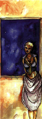 In the beginning was Olorun, the Owner of the Sky, and he looked down from his palace and saw the emptiness of the world which was only sky, and void, and water. So he sent his younger son, Obatala, the maker, to fashion the world and fill it with all manner of creatures. He had his older son, Orunmila, the diviner, fashion it so that it ran smoothly and that those who practiced the magic of the future could glimpse its functioning. When all that was done, Olorun sent Eshu, his linguist and messenger, to go down and start collecting sacrifices for him in return for having made everything possible.