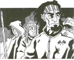 Redcaps - Named after Oshosi, these bastards only like gory epics and tales of violence. The Eshu respect their refusal to lie down and civilize their habits and legends. However, even the Iku tend to avoid them. They have no honor or dignity and like to exploit those who do. Occasionally a drunk corby will decide to hunt a lone Eshu. If an Elegbara suspects this, they run and run fast until the doubts are gone. The oshosi rarely play fair or leave survivors.