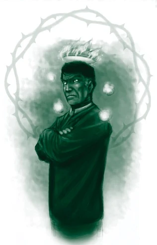 He is a wiry, imposing man who looks to be in his late 60s. He has long since shed his image as a rough-around-the-edges dockyard worker, trading in oilskins and steel-toed boots for tailored suits and Italian leather shoes. He tends to dress in dark colors with a single, striking accent — a charcoal suit with a sky-blue tie, for example. In his mortal mien, he has a thin fringe of gray hair and a deeply lined face with dark brown eyes.