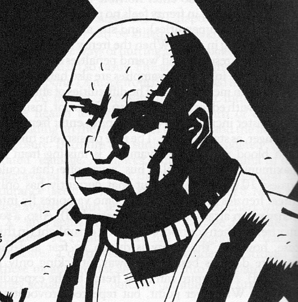 Abilities: Academics (Philosophy) 2, Alertness (Threats) 4, Athletics 3, Brawl 3, Computer 1, Dodge 3, Drive 3, Empathy 2, Etiquette 2, Firearms 3, Intimidation 3, Investigation 1, Melee 2, Security 3, Streetwise 2, Subterfuge 1