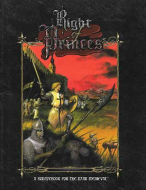 Right of Princes is a supplement for Dark Ages: Vampire that tells how Kindred, Garou, mages, and the Inquisitors can come together to rule or influence an area in the Dark Medieval nights. It is the companion book to Spoils of War.