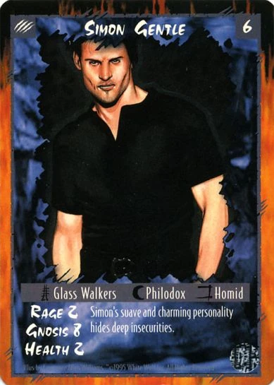 Simon Gentle or "Flash" is a Homid Philodox Glass Walker from New York. He is affiliated with the Sept of the Green.