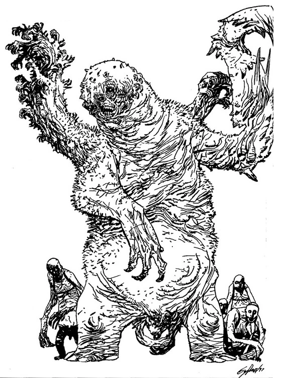 Such a creature is enormous and, with its multiple limbs and organs, is capable of unleashing a maelstrom of destruction. Excess tissue can be molded to bestow carapaces, spines, claws, tusks, palps, mandibles, fanged maws, or whatever the creators desire. Vozhd are mindless and unsalvageably mad, killing, eating, or trampling anything in their path.