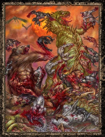 In short, the first War of Rage (in effect, every War of Rage) was a conflict without winners and many losers. Entire Changing Breeds were eradicated, their duties neglected and forgotten. The unity of Gaia's children, never strong to begin with, collapsed and only in some institutions, like the Beast Courts of Asia or the Ahadi of Africa, is cooperation now possible. The Garou, in their quest to be rule all of Gaia's children, had accomplished only to become the sole tenders of Her, a duty too much even for their Nation.